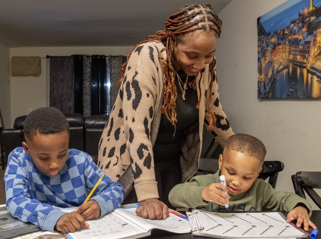 But financially, it is a struggle. Kay works full-time and is studying for a more lucrative career in nursing. Catholic Charities’ New Hope Apartments absorbed the burden of rent for the family for 24 months, giving Kay and her kids stable housing so she could focus on being a mom, working, and studying.
